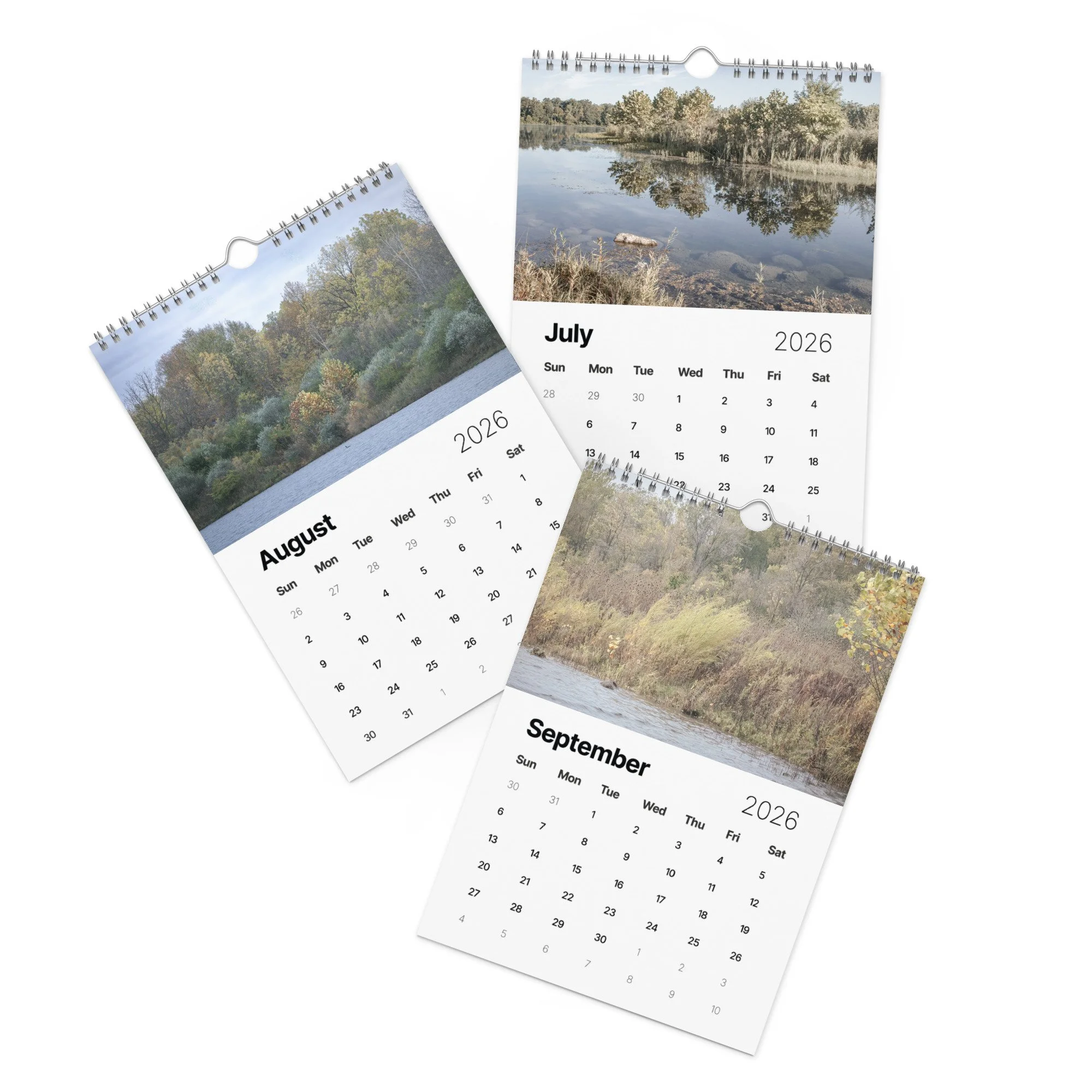 This calendar, printed on heavy duty card stock, features lake photography by Chere' Evans, all from Prairie Oaks Metro Park, Darby Bend Lake Area, in Hilliard, Ohio. Available in two sizes.